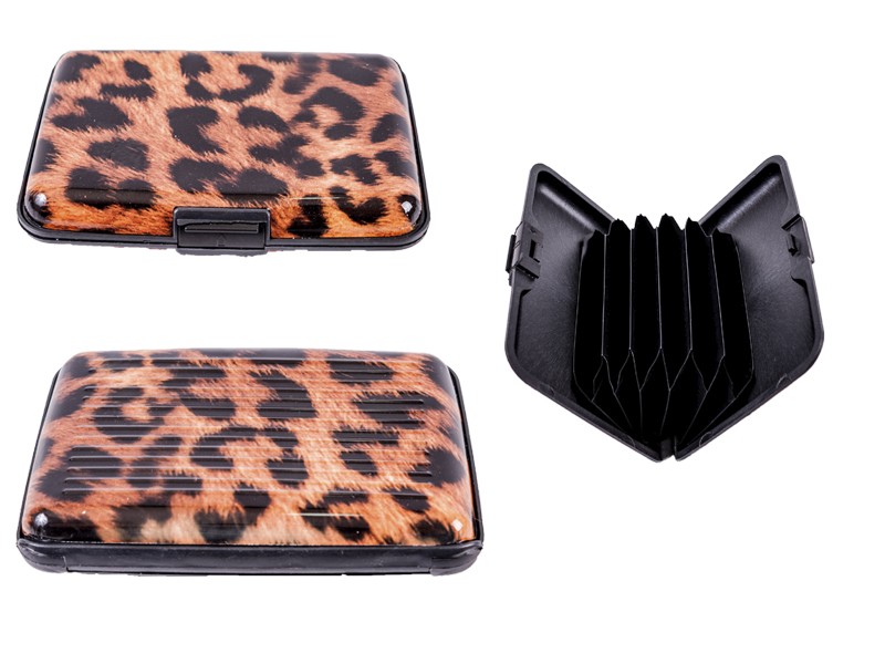 Card Caddy Credit Card, ID&Bus Pass Holder Black/Orange leopard Print . Features: – External metallic hard case platting. – Ultraslim. – Lightweight. – 6 card slots. – Plastic concertina holder for cards. – Conveniently fits in your pocket or purse. Style no: 0002 Black/Orange Leopard print. Barcode: 5019758000021 Dimensions: 11 x 7 x 2 cm Weight: 0.04kg
