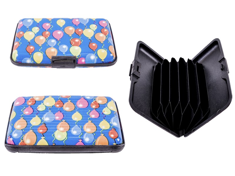 Card Caddy Credit Card, ID&Bus Pass Holder Blue/Multi Balloons Features: – External metallic hard case platting. – Ultraslim. – Lightweight. – 6 card slots. – Plastic concertina holder for cards. – Conveniently fits in yor pocket or purse. Style no: 0002 Blue/ Multi Balloons Barcode: 501975800021 Dimensions: 11 x 7 x 2 cm Weight: 0.04kg Model: 0002 Blue/ Multi Balloons Shipping Weight: 0.04lbs