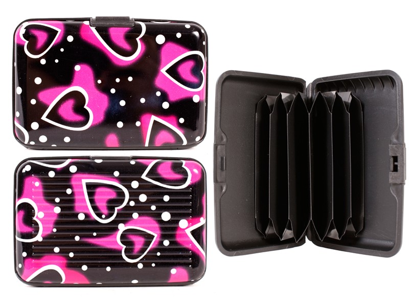 Hard case credit card holder with concertina holder for cards. Dimensions: Height 7.5cm Width 11cm Depth 2cm