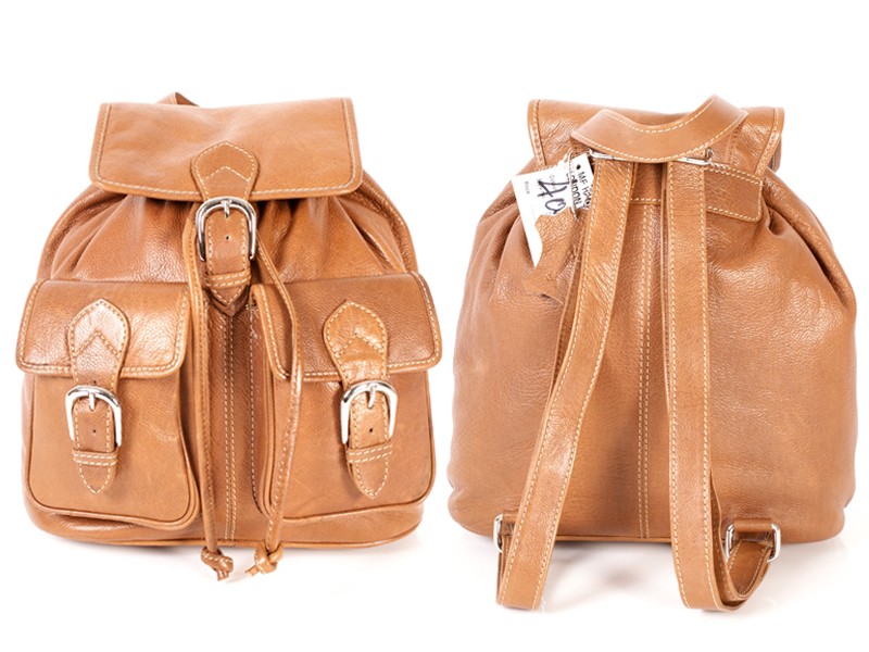 London Genuine Leather backpack with a leather drawstring and a top flap with magnetic popper fastening. Features two front pockets with magnetic popper fastening, a top grab handle and adjustable shoulder straps. Also features a zipped pocket and a mobile phone pouch inside.