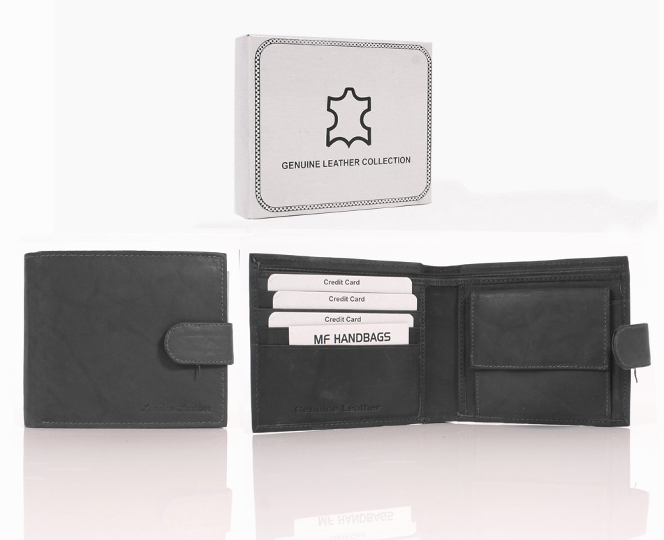 MF Handbags gents real leather stud press wallet with ID slot, card slot, stud press purse and cash compartment. Comes complete with a presentation box.