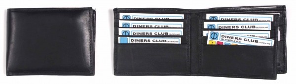 Leather wallet, one window pocket, card pockets and note pockets (one zipped). Available in Black Model: 1183 – S056