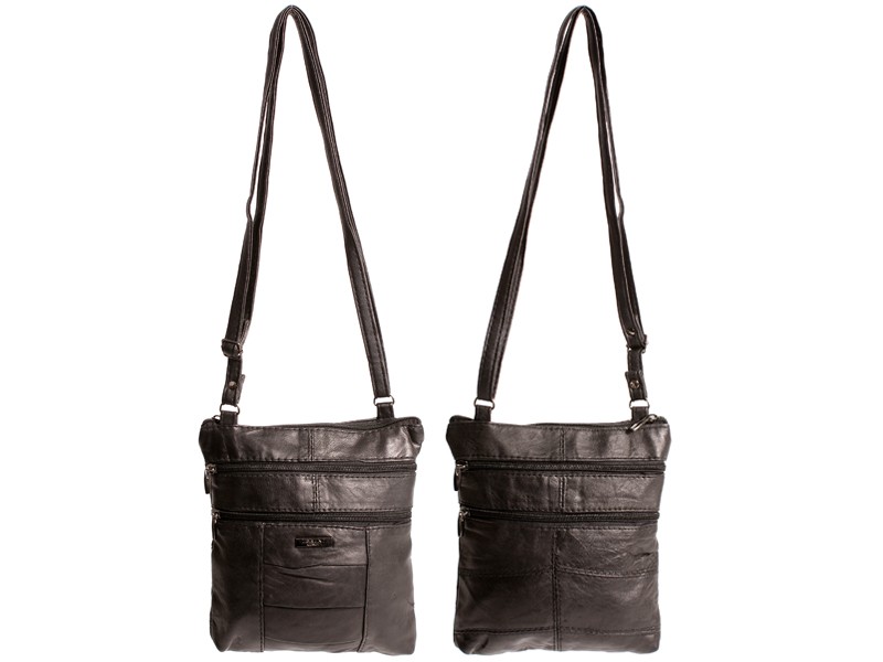 Small sheep nappa real leather shoulder bag with one main zipped compartment, 2 front and 2 rear zipped pockets. Features an adjustable shoulder strap.