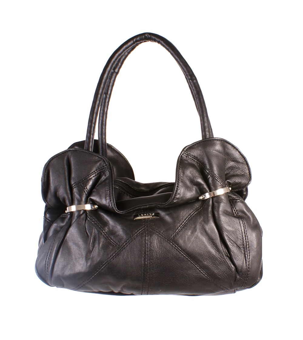Sheep nappa lorenz leather handbag with one main compartment and two grab handles.