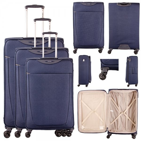 Model: 1985 NAVY SET OF 3 SUITCASE 1985 NAVY SET OF 3 TRAVEL TROLLEY SUITCASES Unisex trolley & Cabin trolley 100% Authentic Suitcases TROLLEY New 4 Wheel Lightweight Suitcase Cabin Trolley -4 WHEELS 360 degrees smooth mobility -STRONG AND DURABLE -PUSH-BUTTON TROLLEY SYSTEM -CROSS BELT INTERIOR -SCRATCH-RESISTANT OUTER SHELL -Exterior Material Made of DELUXE NYLON RIBSTOP FABRIC = Lightweight Yet Durable! -Strong Metal Zippers – Top carry handle for easy grip and easy lifting -Rubber corner buffers. -One main big compartment with buckle locks for holding the clothes. -2 zipper pocket at the front. -COMBINATION LOCK system at the top. -Expandable for extra space. Trolley Dimensions :(including Wheels and Fittings): 76.5cm (30 inches) SIZE: Exterior (76.5 x 46 x 30 cm) 30 x 19 x 13 inch WEIGHT: 3.5 KG CAPACITY: 97 L 66cm (26 inches) SIZE: Exterior (66 x 42 x 25 cm) 26 x 17 x 10 inch WEIGHT: 2.95 KG CAPACITY: 63 L 54cm (20 inches) SIZE: Exterior (54 x 40 x 21 cm) 20 x 16 x 8 inch WEIGHT: 2.4 KG CAPACITY: 38 L BARCODE: 7427304898301 Product 1351/7874