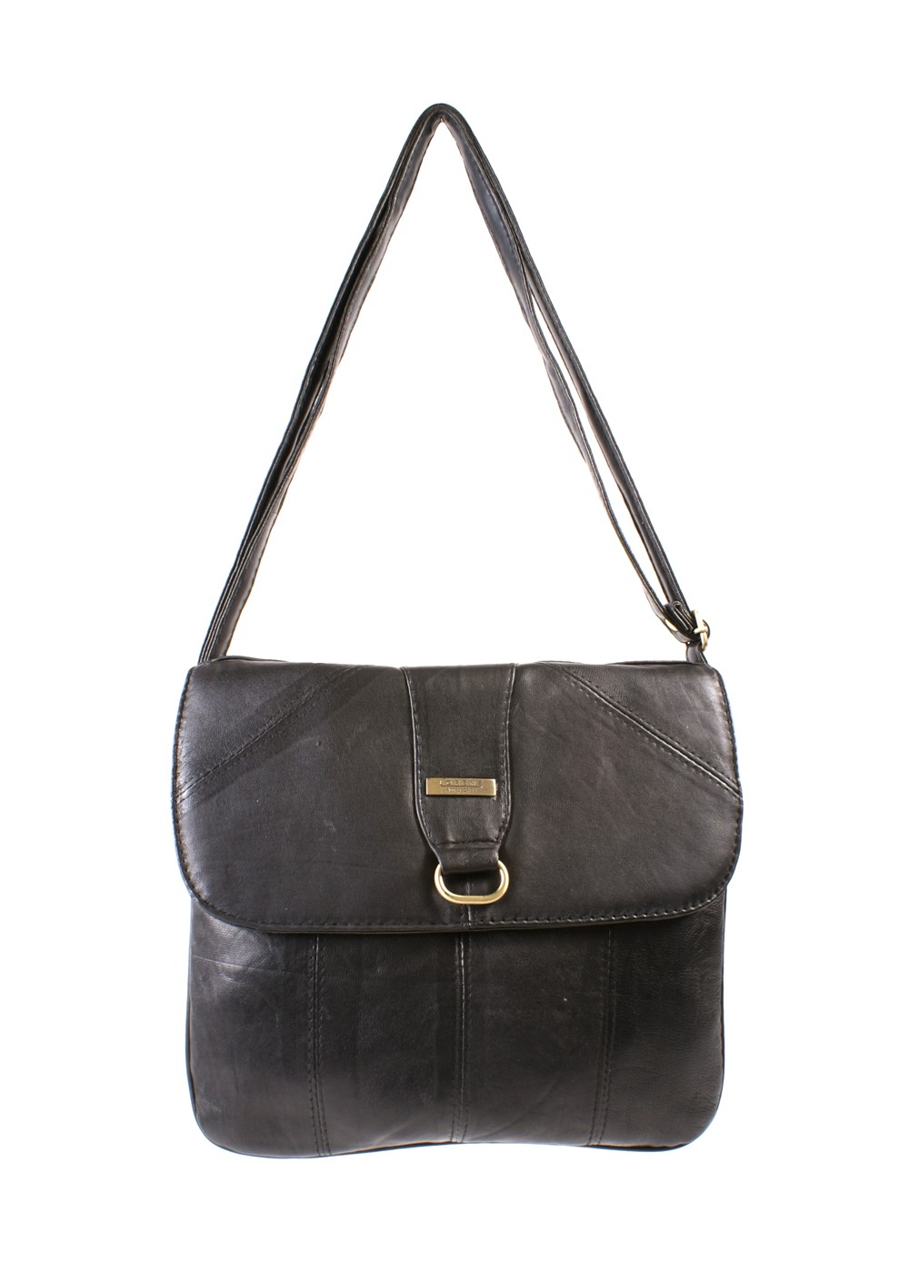 Real leather handbag with simple front buckle design which closes with a magnetic clasp. Flly lined with an inside pocket.