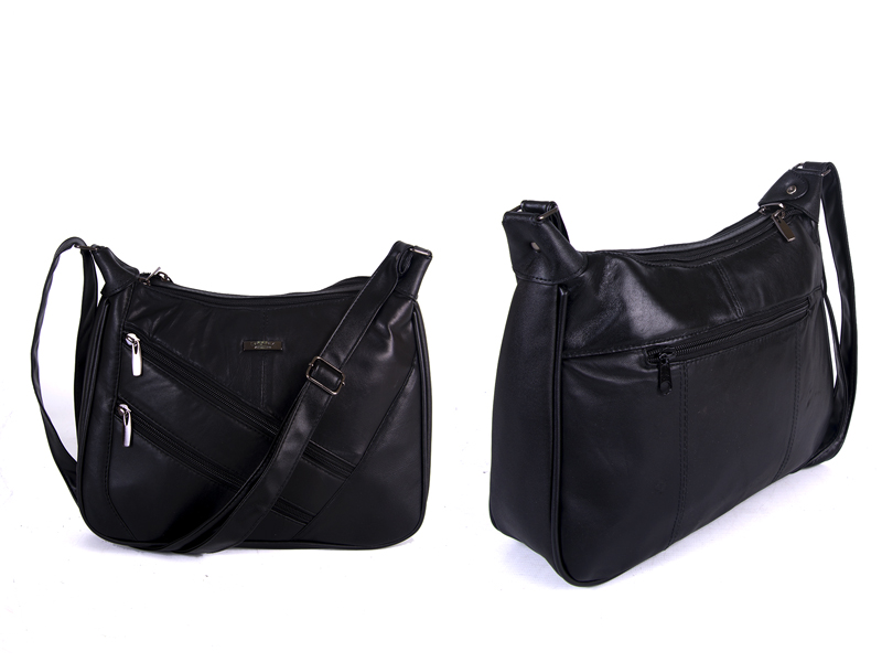 LORENZ leather cross body bag with two front zipped compartments, two large main with key pockets inside, zipped rear pocket and fully adjustable strap.