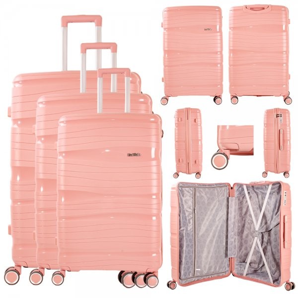 2406 PINK SET OF 3 TRAVEL TROLLEY SUITCASE