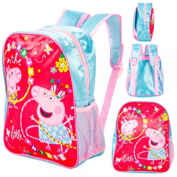 Model: 24205 PINK/BLUE PEPPA PIG BACKPA 24205 PINK/BLUE PEPPA PIG PREMIUM STANDARD KIDS BACKPACK -One main U-shape zipped compartment. -On the side pocket for a small bottle. -Wipe clean. -Polyester finishing. -A top grab handle. -Spacious main compartment. -Lightweight, ergonomic, and adjustable shoulder straps. -Age 3+ Barcode: 5 060569 224236 Dimensions: 12 x 4 x 10 inch (31 X 10 X 26 CM) Capacity: 9 liters Weight: 0.20kg Product 1424/7504