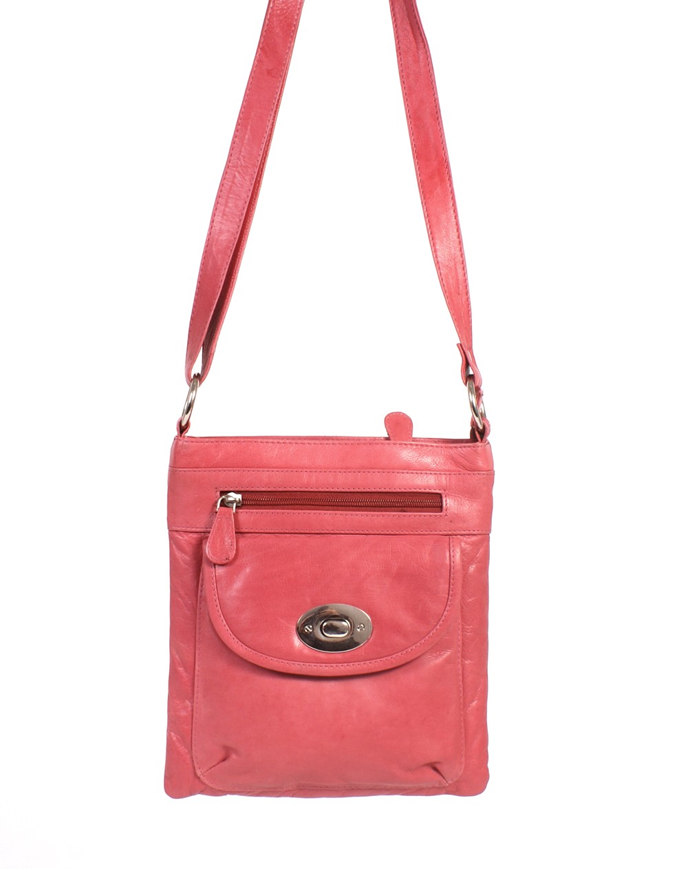 Italian leather fashion bag with front zipped pocket, front flap, adjustable shoulder strap, fully lined interior with inside zipped pocket.