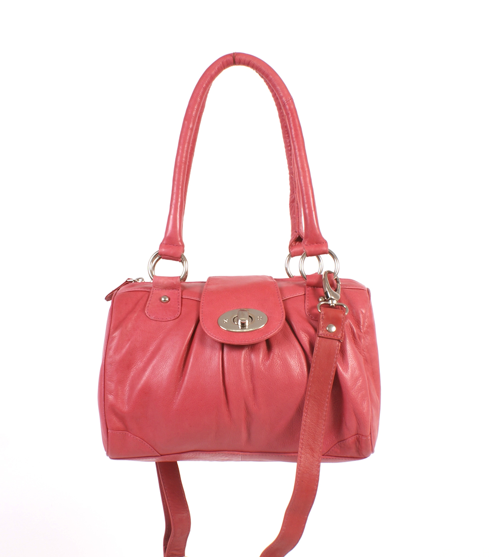 Italian leather fashion handbag with stud flap. Inside pocket pouch and zipped inside pocket.