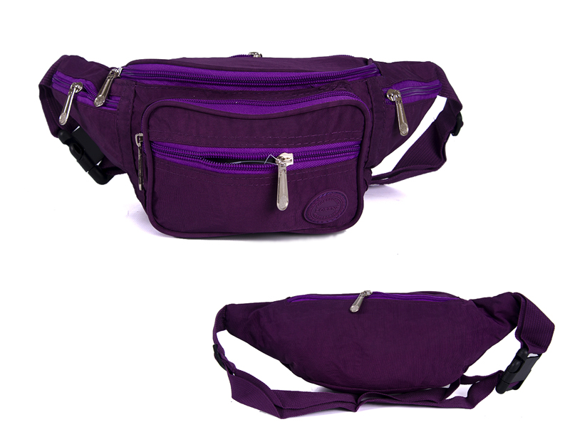 2522 PLUM CRINKLED NYLON BUMBAG WITH 6 ZIP POCKETS