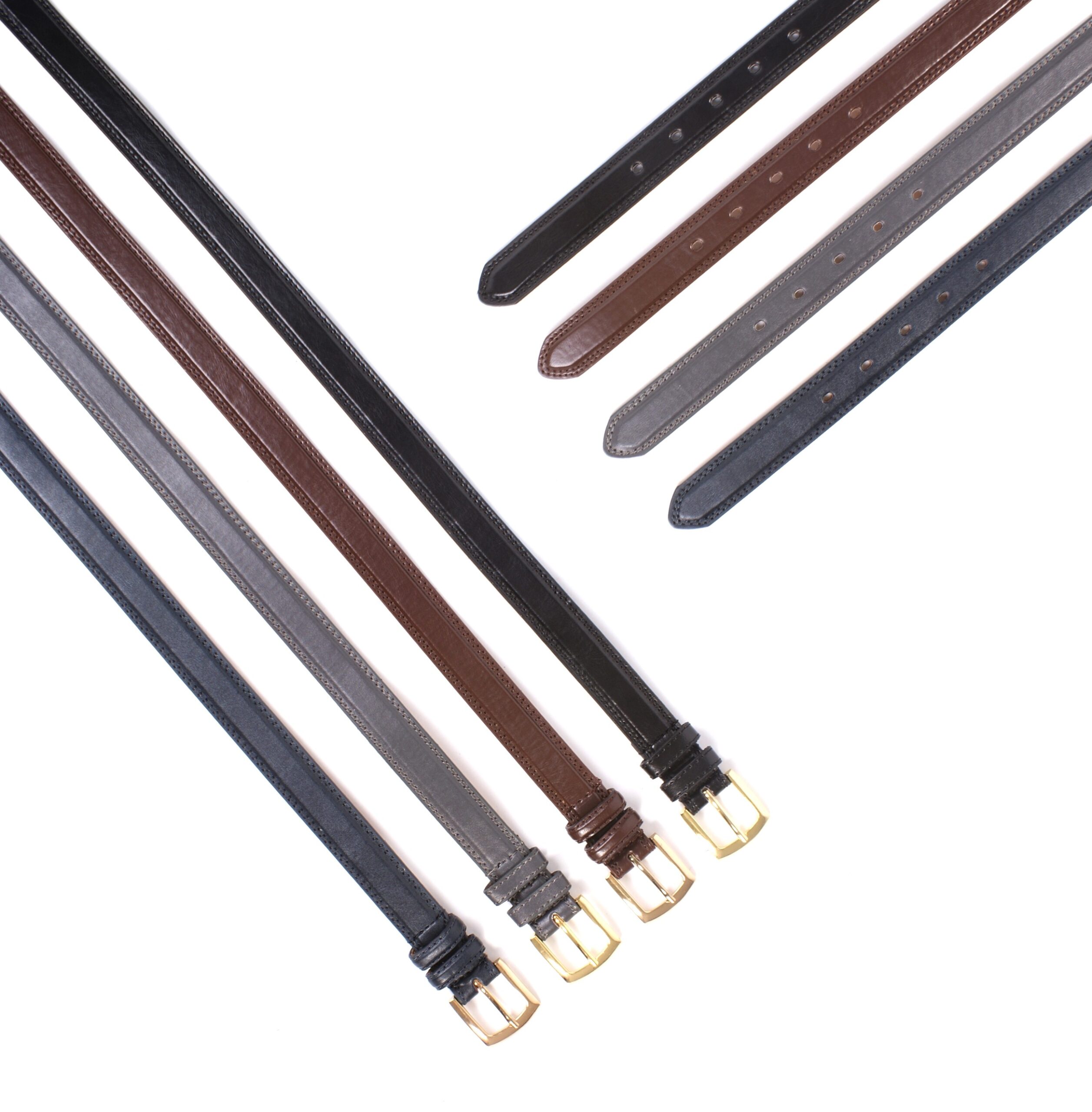 Leather smooth finish 1″ belt with a gold buckle.