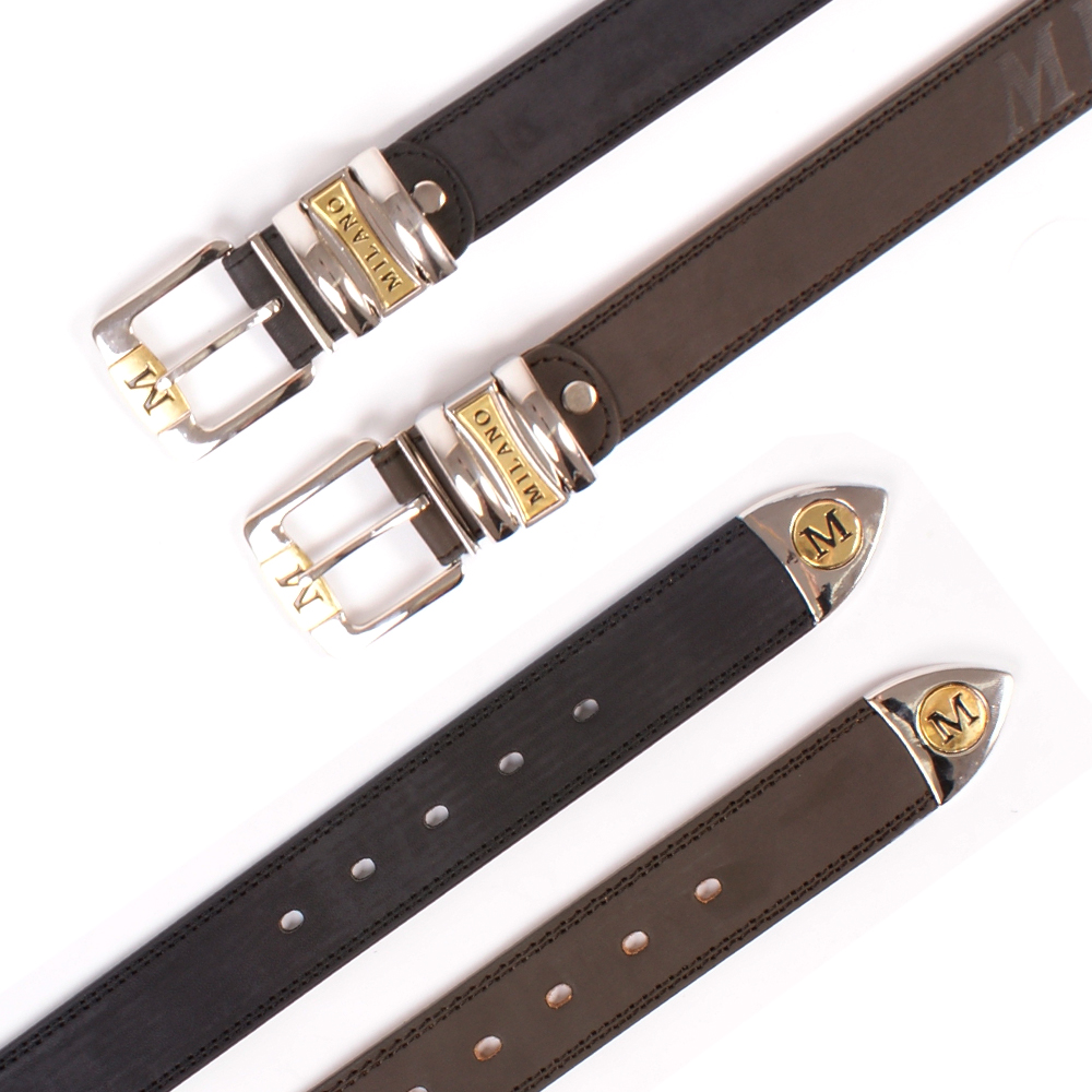 Milano leather smooth finish 1.5″ belt with a gold buckle.