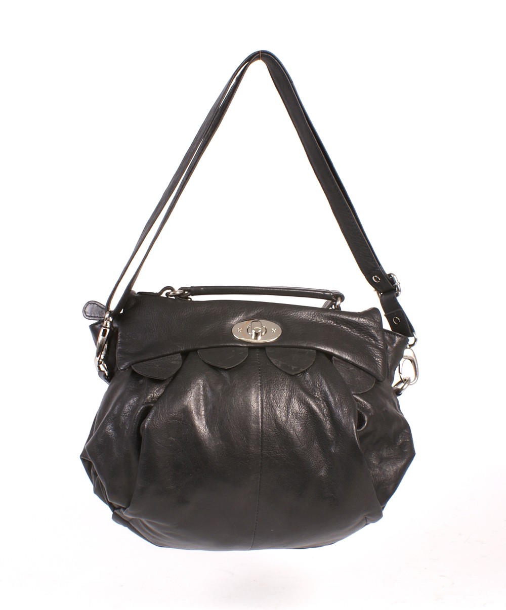 High quality Italian leather handbag with front flap over and front buckle design, adjustable shoulder strap, top grab handle, inside pocket and fully lined interior.