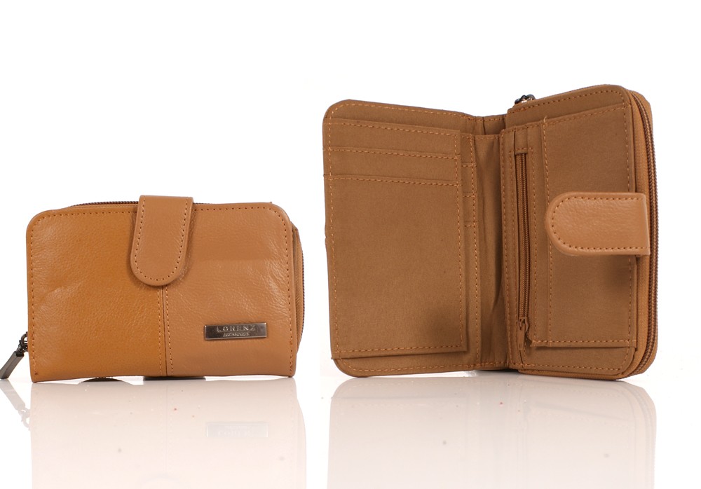 Model: 3706 TAN RFID – Cow Hide Zip Lorenz cow hide purse with microfibre interior, zipped change compartment, card pockets, notes pocket .