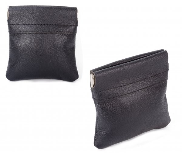 Model: 3717 BLACK COIN PURSE Small leather coin purse with easy access compartment that is opened by squeezing the clasp. Dimensions- 9cm x 9.5 x 0.5cm Weight- <100g Product 1951/6808