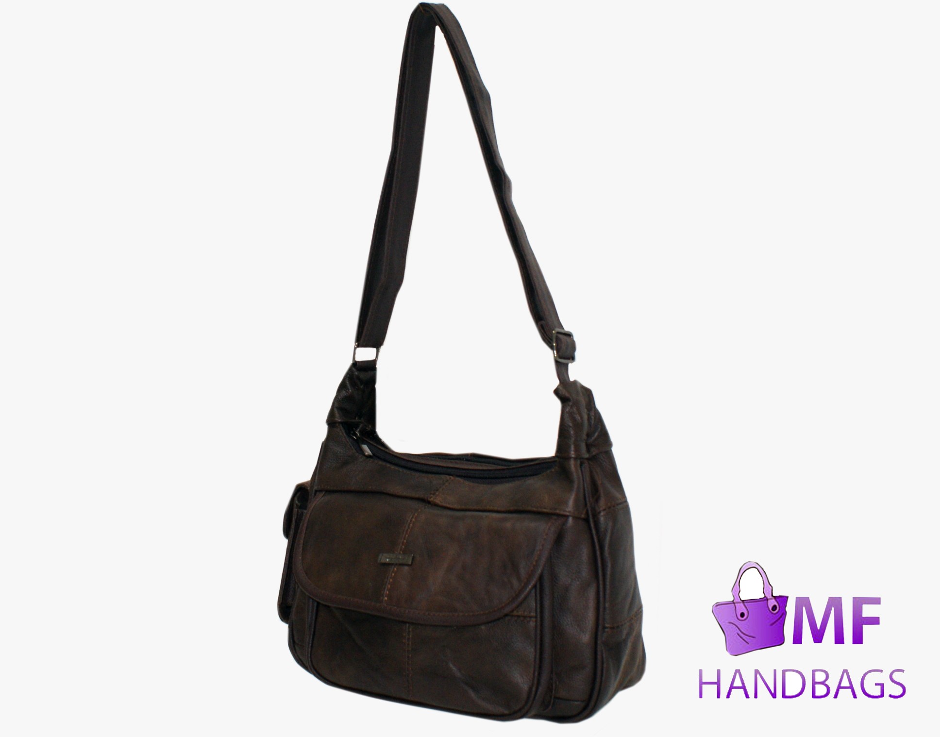 Lorenz leather fashion bag, two main compartments with internal zip pocket and mobile phone pouch, rear zip pocket, front press stud pocket and side mobile phone pocket