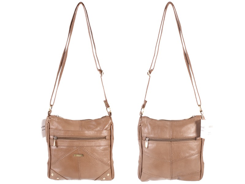 Multi zip Lorenz cow hide leather across the body bag. Features one main zipped pocket with a small zipped pocket inside, a front zipped pocket, a front velcro fastening pocket and a rear zipped pocket. Fully lined bag with an adjustable shoulder strap. Dimensions: Height 23cm Width 24cm Depth 5cm Barcode: 5038756130271