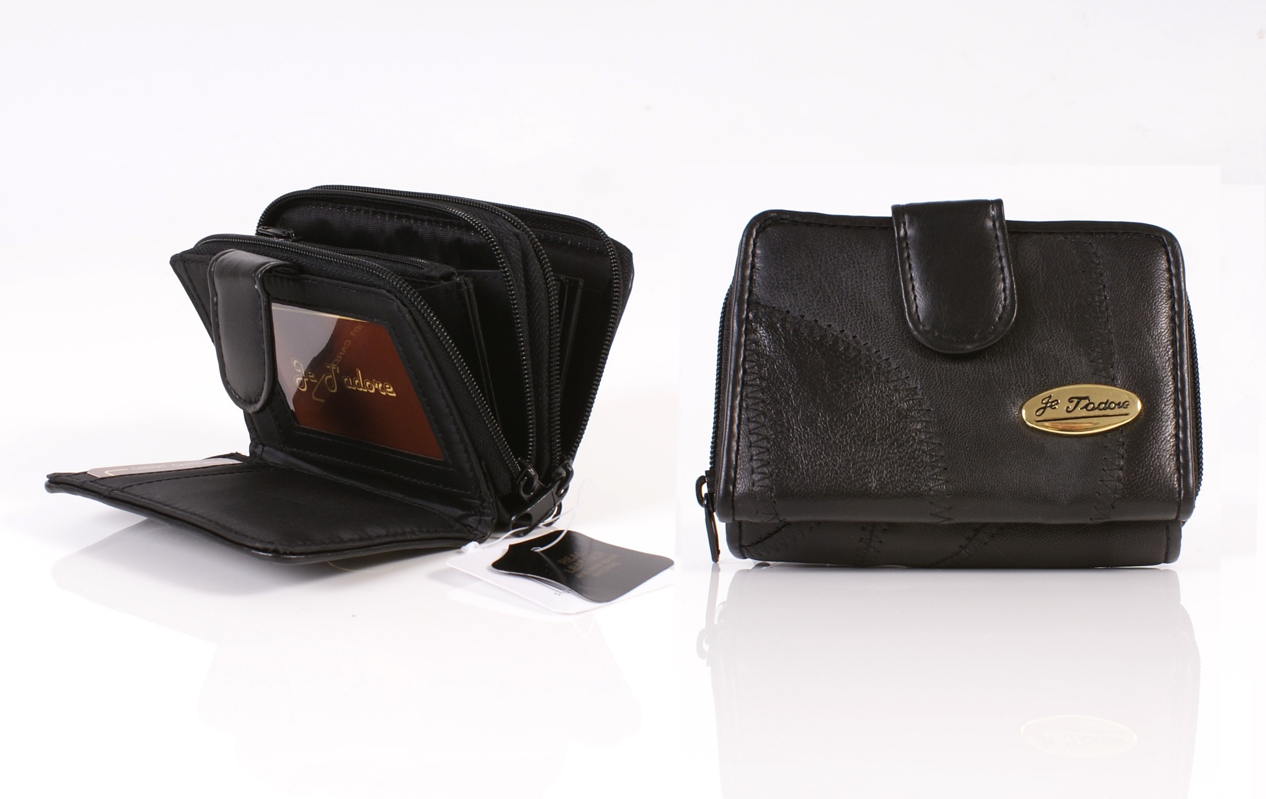 Jadore zip round patchwork leather purse with two concertina purse sections with ID slot and card slots.