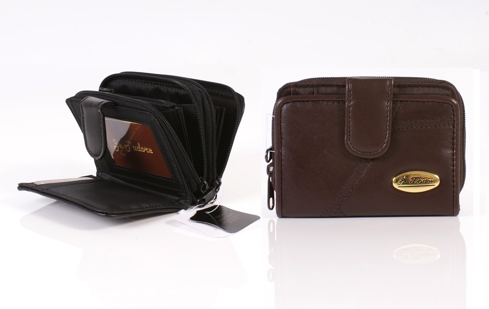 Jadore zip round patchwork leather purse with two concertina purse sections with ID slot and card slots.