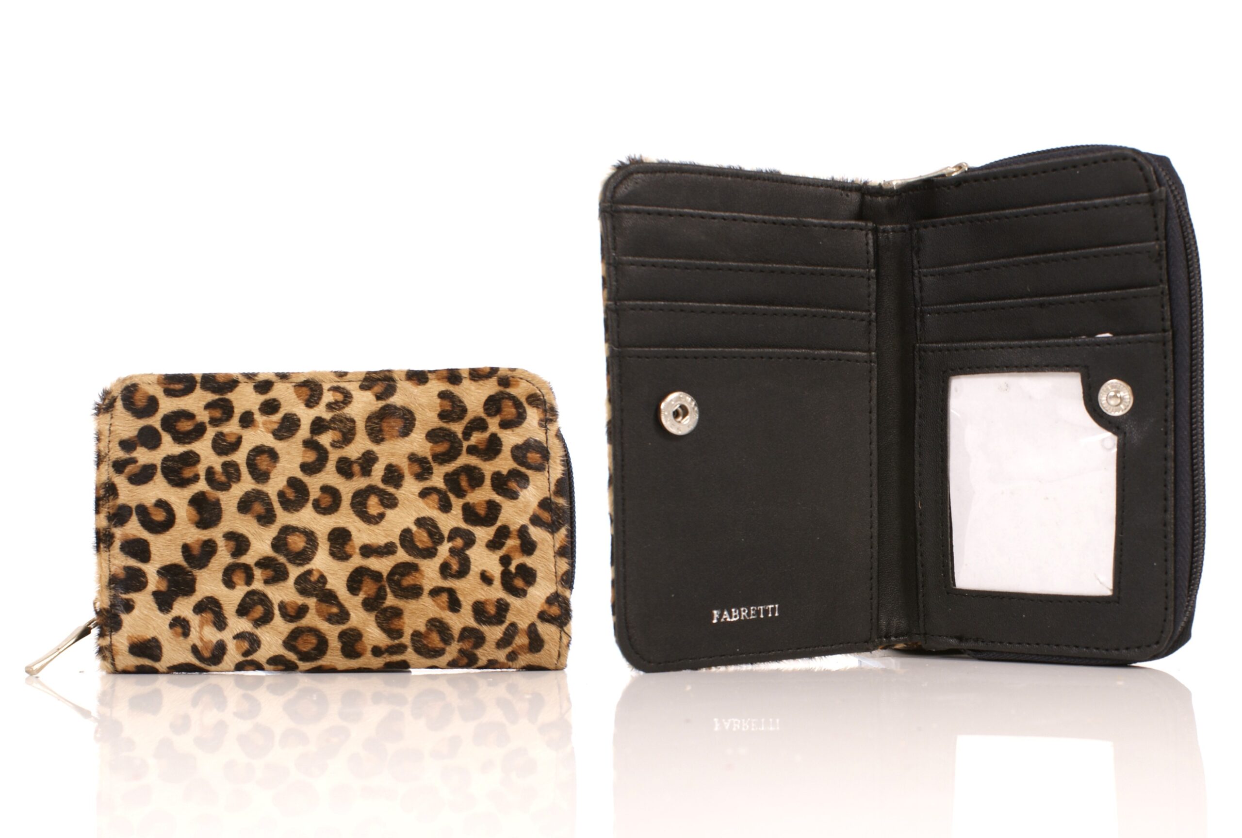 Fur textured purse with many card slots, cash compartment, zipped coin purse and stud press closure.