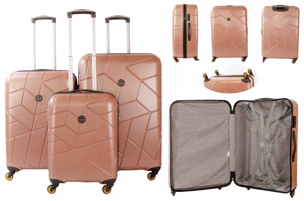 Model: 5164 PEACH SET OF 3 SUITCASE 5164 PEACH SET OF 3 TRAVEL TROLLEY LUGGAGE SUITCASE New 4 Wheel 360-degree hard case Suitcase Cabin Trolley -4x 360 DEGREE SPINNER WHEELS -FULLY LINED -STRONG AND DURABLE -PUSH-BUTTON TROLLEY SYSTEM -CROSS BELT INTERIOR -SCRATCH-RESISTANT OUTER SHELL -COMBINATION LOCK -Exterior Material Made of 100% strong plastic = Lightweight Yet Durable! -Strong Metal Zippers – Top carry handle for easy grip and easy lifting -One main big compartment with buckle locks for holding the clothes. Dimensions :(including Wheels and Fittings): 78cm (29 inches) SIZE: 75.5 X 48.5 X 28.5cm (29 x 19 x 11 inches) WEIGHT: 4.4KGS CAPACITY: 93L 65cm (26 inches) SIZE: 65 X 42.5 X 25cm (26 x 17 x 10 inches) WEIGHT: 3.5KGS CAPACITY: 63L 55cm (21.5 inches) SIZE: 55 X 38.5 X 21.5cm (21.5 x 14 x 8 inches) WEIGHT: 2.7KGS CAPACITY: 35L Barcode – 8698598514782