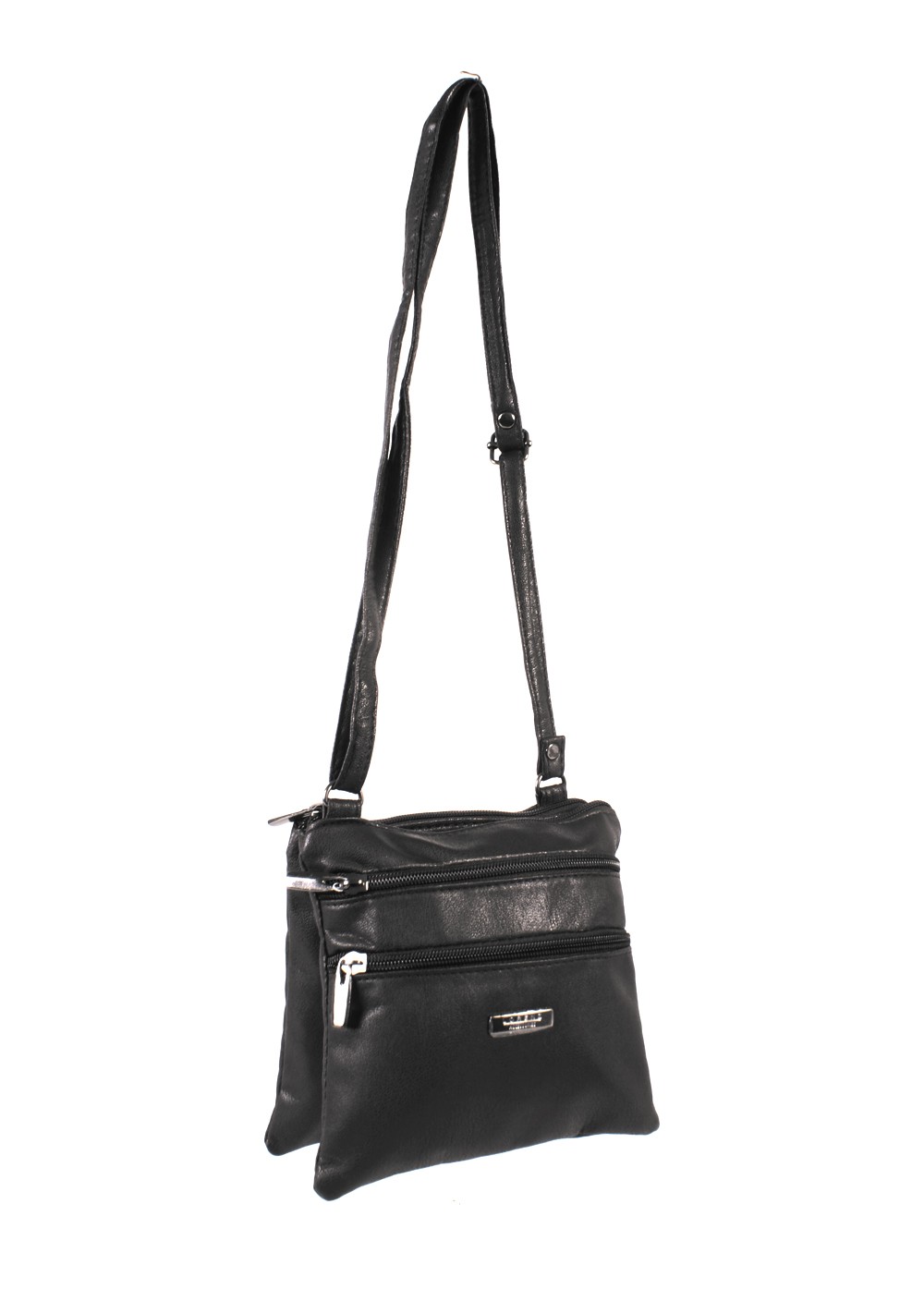 Small PU Lorenz handbag with two main sections, two front zipped pockets and an adjustable shoulder strap.