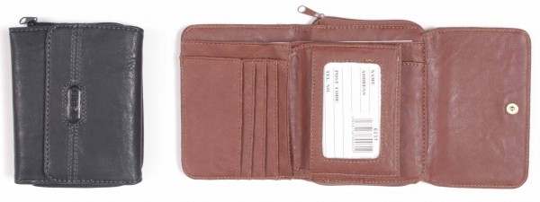 Medium size purse, zip change section, card pockets, notes pocket and internal window pocket. Available in colours Brown and Black.