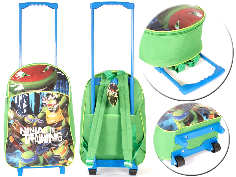 Nickelodeon Teenage Mutant Ninja Turtles large premium wheeled backpack with one main zipped compartment. Features a pull out handle, top grab handle, adjustable shoulder straps, two wheels.