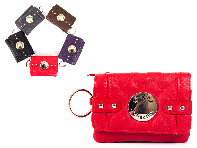 lorenz Accessories PU purse with poppered front and zipped pockets on front and rear, plus a key ring link on the side.
