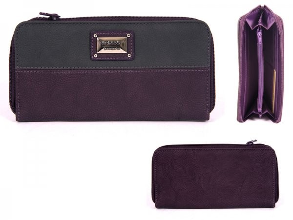 Model: 7584 PURPLE Lng Cntrst Lthr Grn LORENZ purse with zipped closed main that has three pockets inside card holders and one zipped pocket. Size 19 x 9.5 x 1.5 cm Bar %038756207140