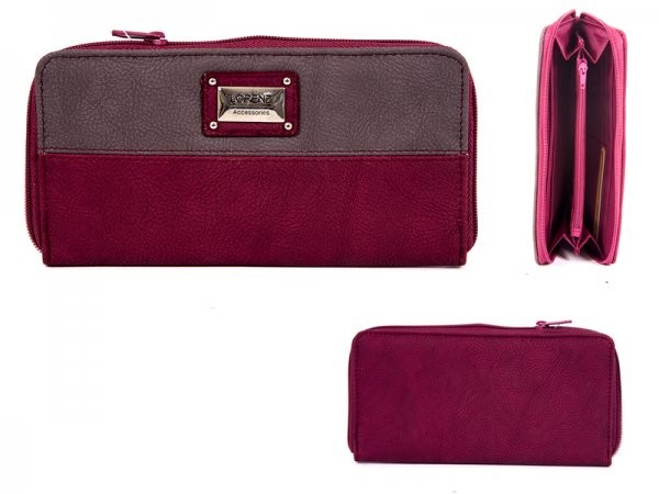 Model: 7584 RED Lng Cntrst Lthr Grn Pu LORENZ purse with zipped closed main that has three pockets inside card holders and one zipped pocket. Size 19 x 9.5 x 1.5 cm Bar %038756207140