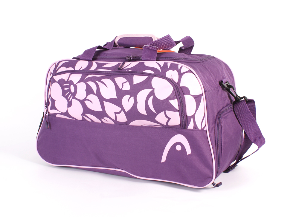 Head holdall with pink floral pattern design.  Features a large side zipped pocket, two grab handles with grip protector, adjustable shoulder strap and seperate zipped section for shoes or wet clothes.