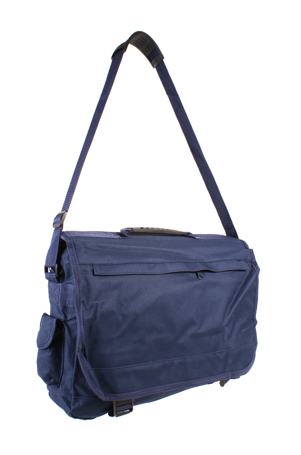 Nylon school messenger bag with large front flap. Features front pockets for notepads and pens etc. Also has an adjustable shoulder strap and a grab handle on the top and zipped pocket on front flap.