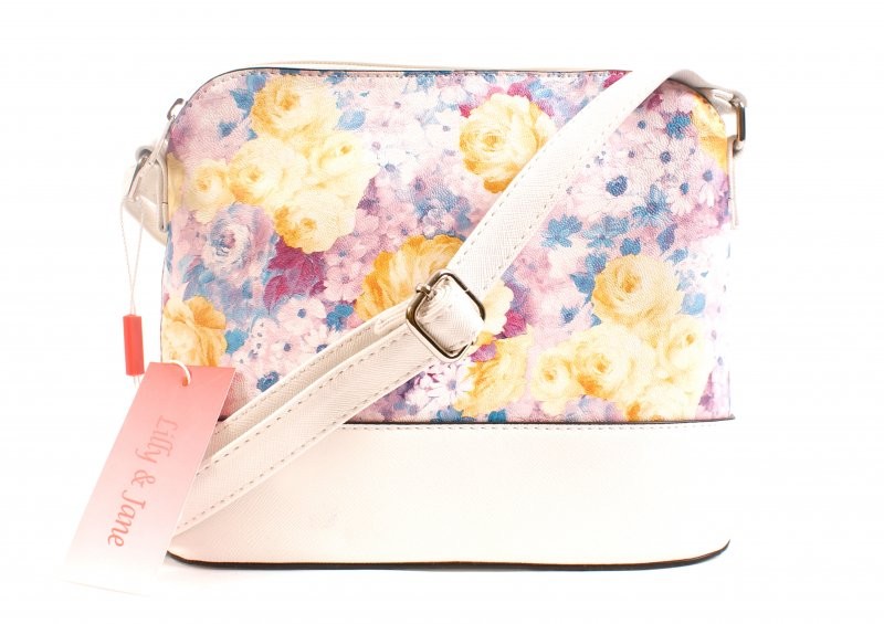 Lily & Jane bag features one main zip compartment, an open pocket and a zip section on the inside and adjustable straps. 20 x 23 x 10 Barcode: 5050774024295 Model: CC109 LILAC FLORAL BAG