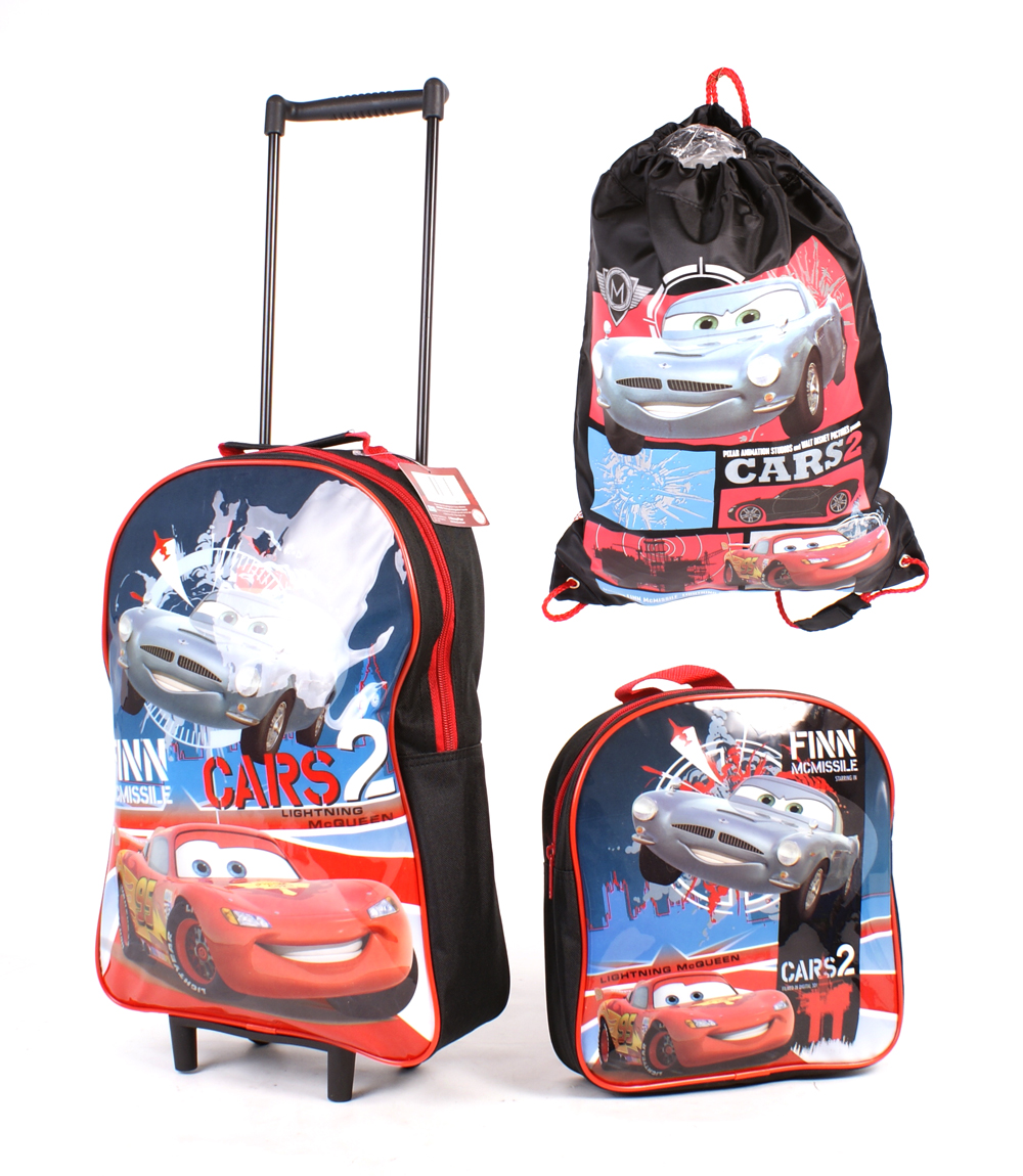 Cars set of kids set of 3 bags including gym bag, backpack with wheels and normal backpack.