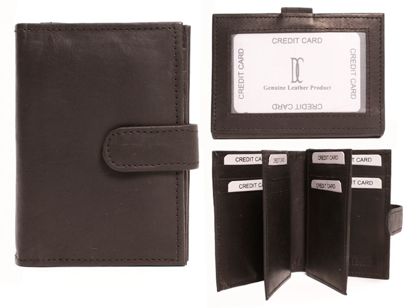 DC by Diva Creations premium genuine leather mens wallet features a stud press closure with mulitiple card slots, hidden sections and an ID window at the back.