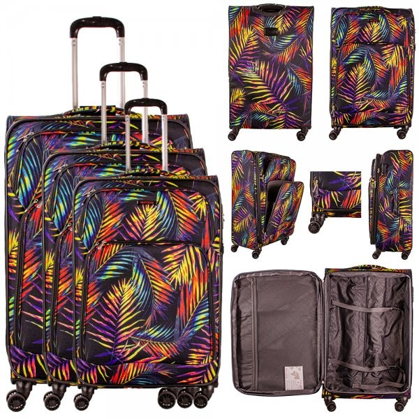 FA1970 LEAF PRINT SET OF 3 LIGHT PACK 2 TROLLEY SUITCASE
