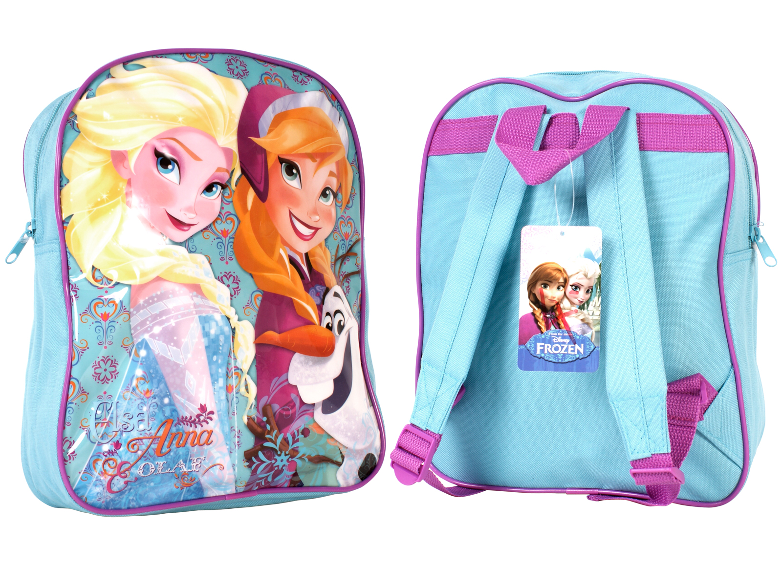 Frozen backpack with one main zipped compartment, adjustable shoulder straps and a top grab handle.