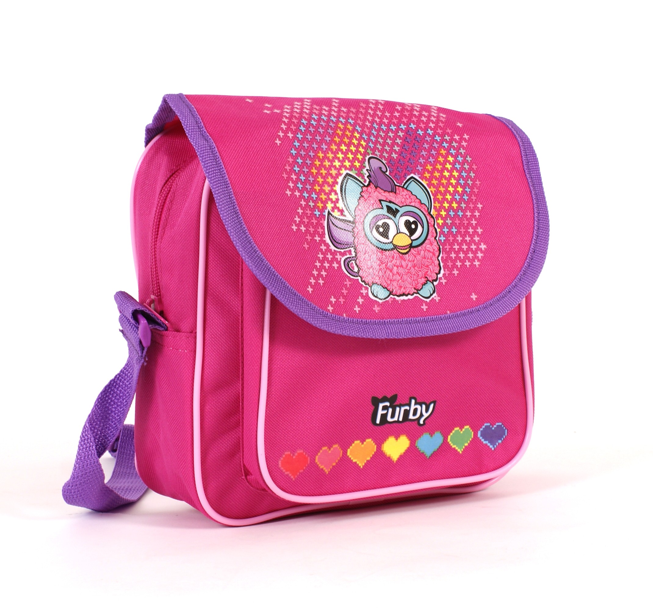 Furby backpack with adjustable shoulder straps with front zipped pocket measuring 25 cm in height.