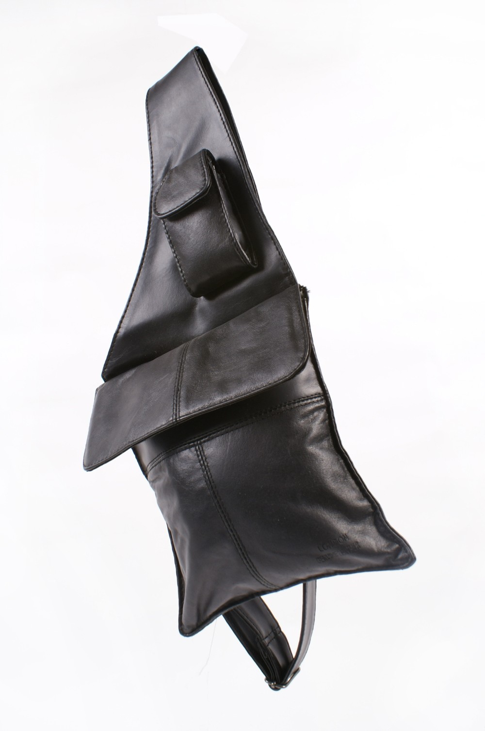 Leather look shoulder bag with magnetic clasp on the front and a zipped pocket inside the bag and a mobile phone pouch on the adjustable shoulder strap.? Availbale in black.
