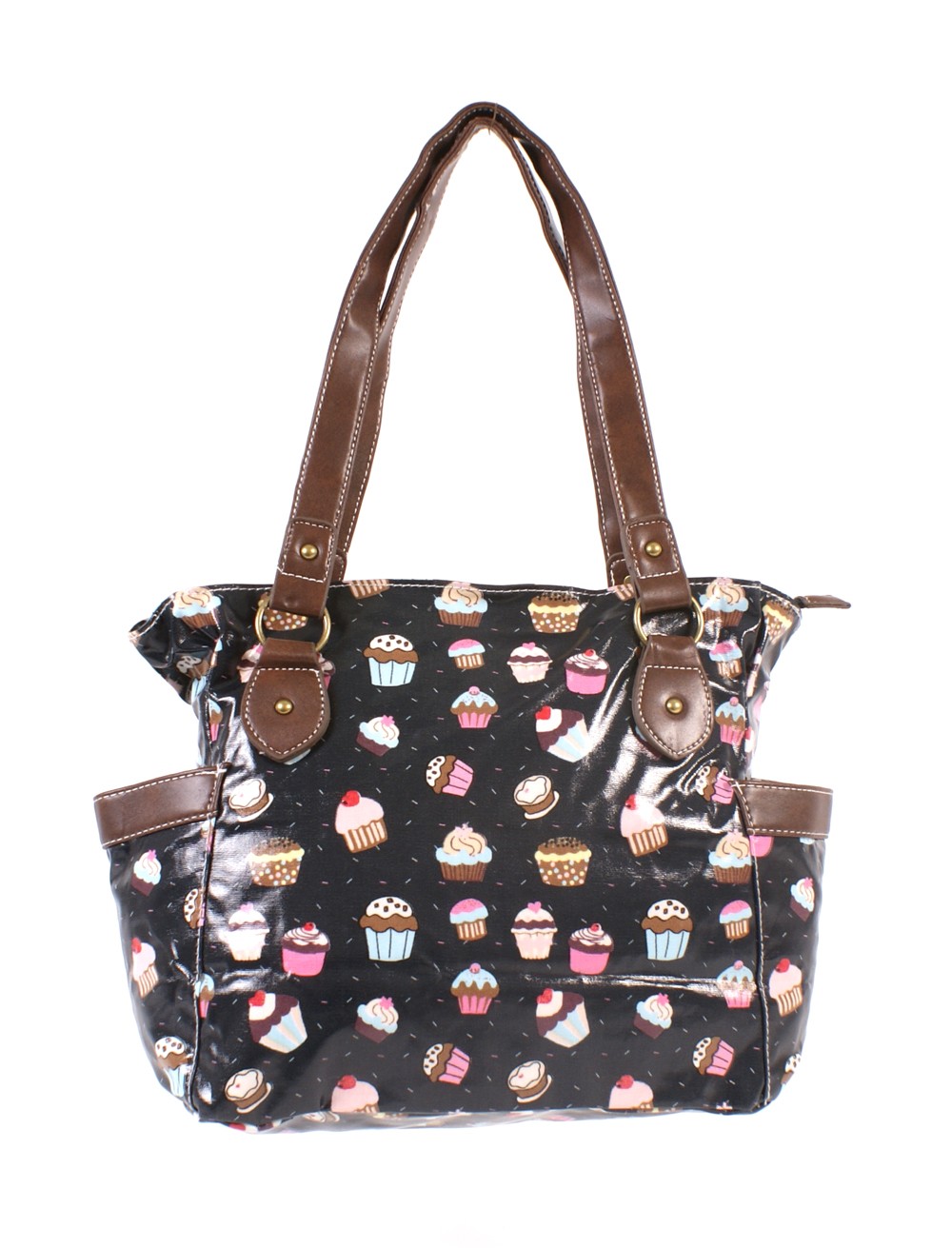 Floral pattern PU large fashion handbag with two side pockets, two grab handles and a main zipped entry.