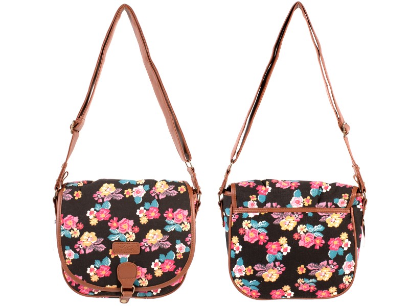 Patterned small canvas shoulder bag with magnetic snap fastening flap. Features one main zip compartment with a small zip pocket and two pouch pockets inside. Also features an adjustable shoulder strap. Dimensions: Height 20cm Width 26cm Depth 10cm Barcode: 5053183019456 Model: HB-D-FP-02 SMALL FLOWERS Shipping Weight: 0.3lbs