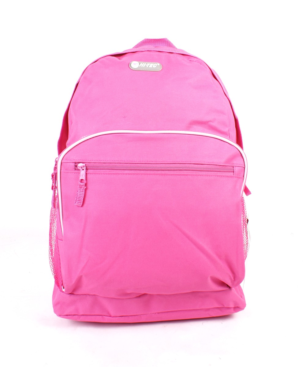 Small Hi-Tec backpack, with adjustable shoulder straps. Main zipped compartment and rear zipped pocket. Elasticated mesh pockets on sides.