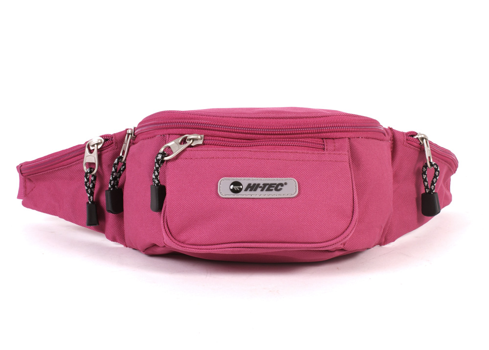 A lightweight Hi-Tec waist bag with a front zip pocket and 2 side pockets.