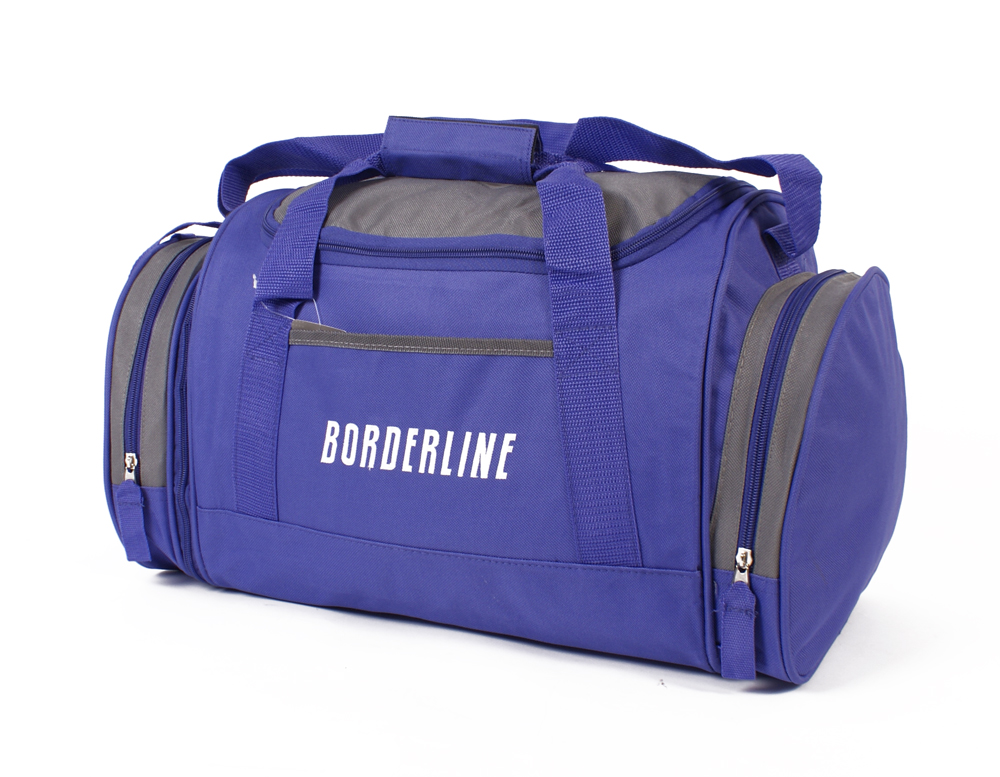Borderline holdall with a front zipped pocket. 2 side pockets which 1 of the pockets zips off and can be used as a small bag itself. 2 grab handles and an adjustable shoulder strap.