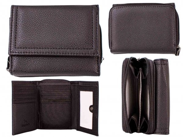 Model: JBPS229 BLACK LADIES PURSE JBPS229 BLACK LADIES PURSE WITH POP FRONT & 1 ZIP This is a Great Value Ladies Purse. -Made from Soft Leather with a Microfibre interior, which is also very durable. -As you can see from the images it also has a really handy wallet section as well as a large change area, an ideal everyday purse. -It’s having 1 pop and 1 zipper section for extra space and practicality. Its Features in More Detail: -8 Credit Card Slots, -2 pockets under the card slot -1 note pocket, Additional Zipped Section. -1 Photo/ID Window -1 more zipper pocket with 2 open pockets Dimensions: Approx 13cm x 5cm x 9cm (5 x 2 x 3.5 inches) Fully open: 7.5 inches. Barcode: 5056274 751167 Product 5670/7481