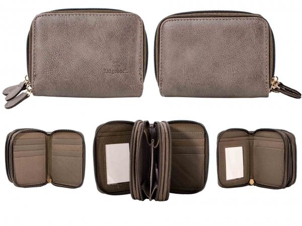 JBPS231 GREY LADIES PURSE WITH 3 ZIP SECTION