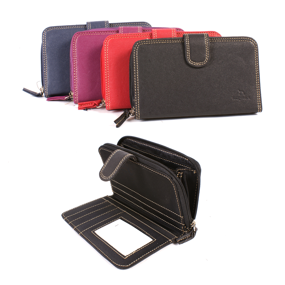 Medium sized PU purse with a zipped coin purse and multiple card slots and an ID holder.